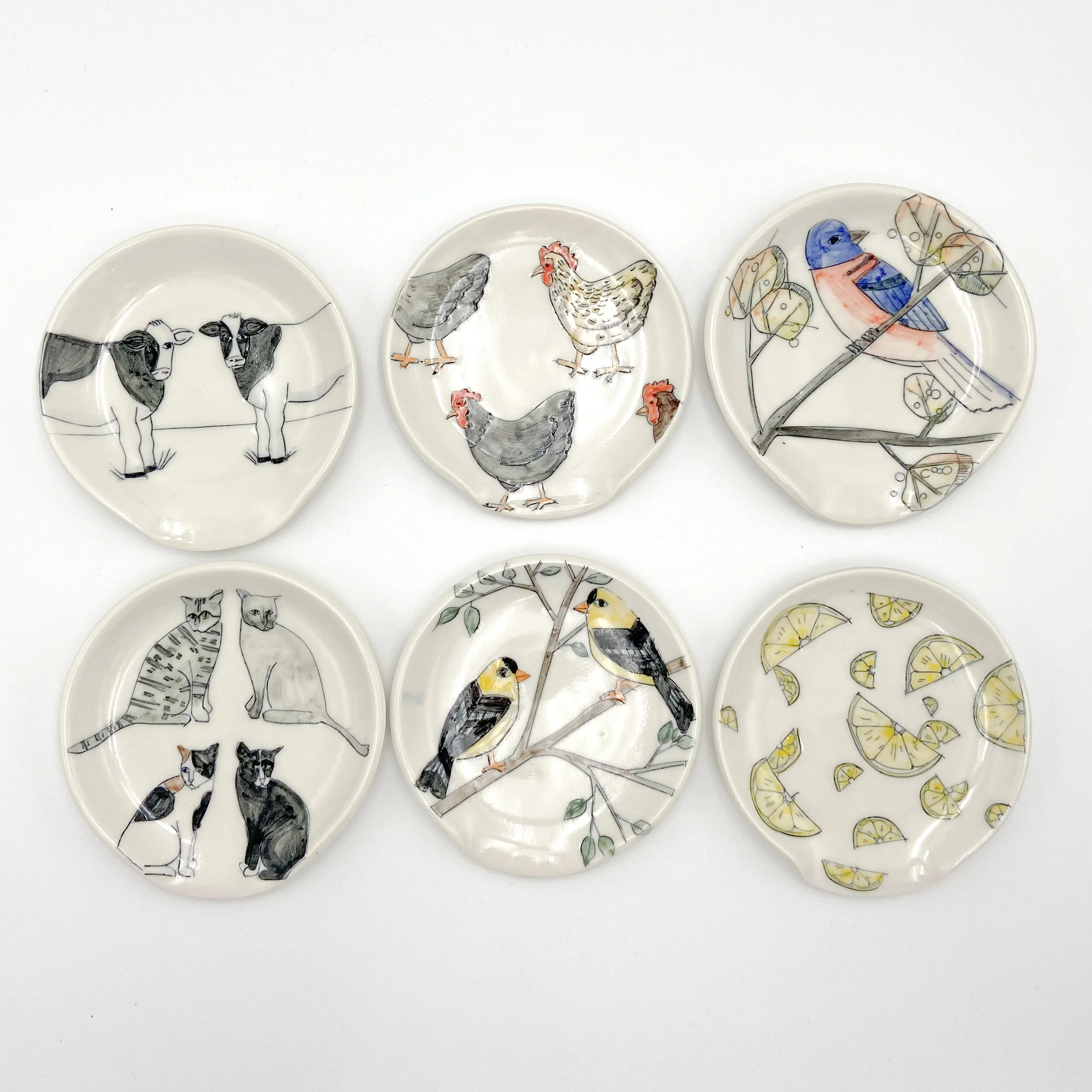 Categories: Select a Category Tools ornaments Lighting spoons Spring cleaning Sale Pre-Order and Custom Plates Accessories kitchen accessories For Pouring Trinket Dishes Planters Mugs and Cups Jars and urns Vases Bowls Trinket Dishes Double Heart Trinket Dish with Crows $65.00 Sold out Ring Dish with Bluebird $65.00 Tiny Bowl with Grey Cat $20.00 Tiny Bowl with Owl $20.00 Sold out Tiny Bowl with lemons $20.00 Sold out Tiny Bowl with Cat and Mouse $20.00 Tiny Bowl with crow $20.00 Sold out Tiny Bowl ABCDEFGHIJKLMNOPQRSTUVWXYZ $20.00 Sold out Tiny Bowl with Chicken $20.00 Tiny Bowl with 2 Cats $20.00 Sold out Spoon rests $45.00 PRE ORDER Condiment Bowl $30.00 PRE ORDER Spoon Rest $45.00